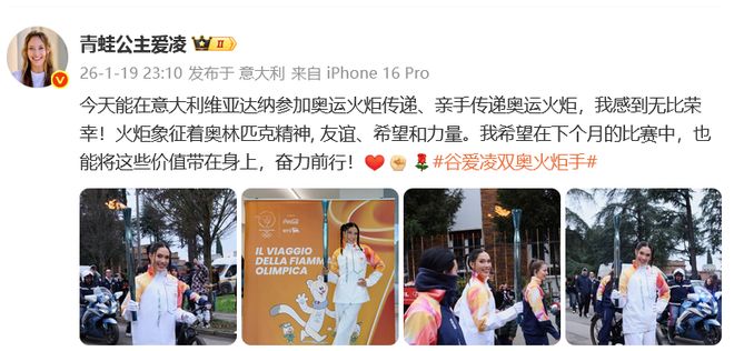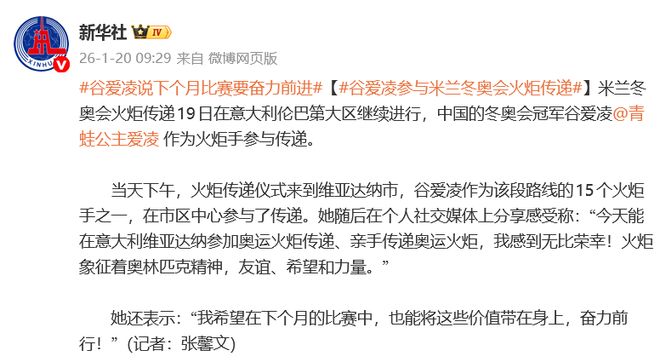 18日上午,谷爱凌于社媒向LAAX、国际雪联以及所有朋友致谢,特别点明成为首位获取20场世界杯胜利的选手,使得一切愈发特别。19日火炬传递完毕后,她再度发布动态,抒发亲手传递奥运火炬之感荣幸。这般高密度的更新,让人目睹她于密集赛程之余的真诚分享,评论区中,粉丝们纷纭留言,翘盼她在米兰的表现,亦有普通网友感慨,此姑娘真把滑雪给玩透彻了。