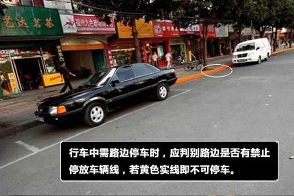 黄色实线于路肩上,乃停车之禁区也,意为此路段全天候严禁任何车辆停放。诸多车主见他人停车便随之停,然归来却发觉车上多了一张罚单,此即因忽略了这条黄色实线之存在也。