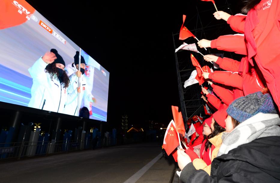 市民李岩,拍下了一幕,大家驻足观看开幕式,照片里,有裹着厚棉袄的老人,还有骑在爸爸肩头的孩子,这块大屏,不但成了直播窗口,还成了延庆冬日里最有人气的聚集地,过往行人,就算赶路,也会忍不住停下,看几分钟赛事。