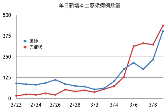 你所见到的无症状感染者数据正悄然变换防疫节奏。从3月6日到9日,国内连续四天新增无症状感染者数量多于确诊病例,其占比最高达到63%。这表明每三个感染者里就有两个在你我身旁若无其事地进行生活、开展工作,由此病毒传播已然从“明枪”转变为“暗箭”。