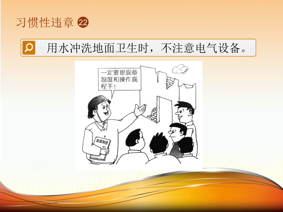 倘若电气设备着了火,不先将电断掉就去泼水灭火,结果火没扑灭自己反倒先触电了。要是设备跳闸后不查找原因便强行送电,设备烧坏还算小事,而引爆线路起火那才是大事。当布置工作任务之际不交代安全注意事项,工人稀里糊涂地就去面临危险了。