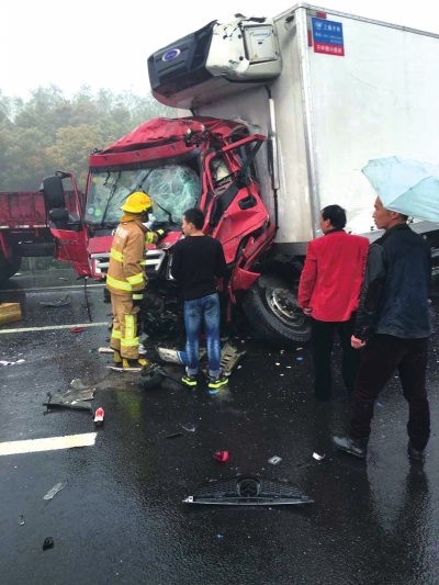 现场有56辆汽车出现追尾状况,21人被困于车内。警方经调查认定后,得知事故起因乃是雨天路滑,两辆大货车不小心相撞进而翻车,致使后方3辆大客车、20辆小客车在多点多段陆续追尾。这种连锁反应于湿滑路面上特别常见,一旦有车失去控制,后续车辆根本没来得及作出反应。