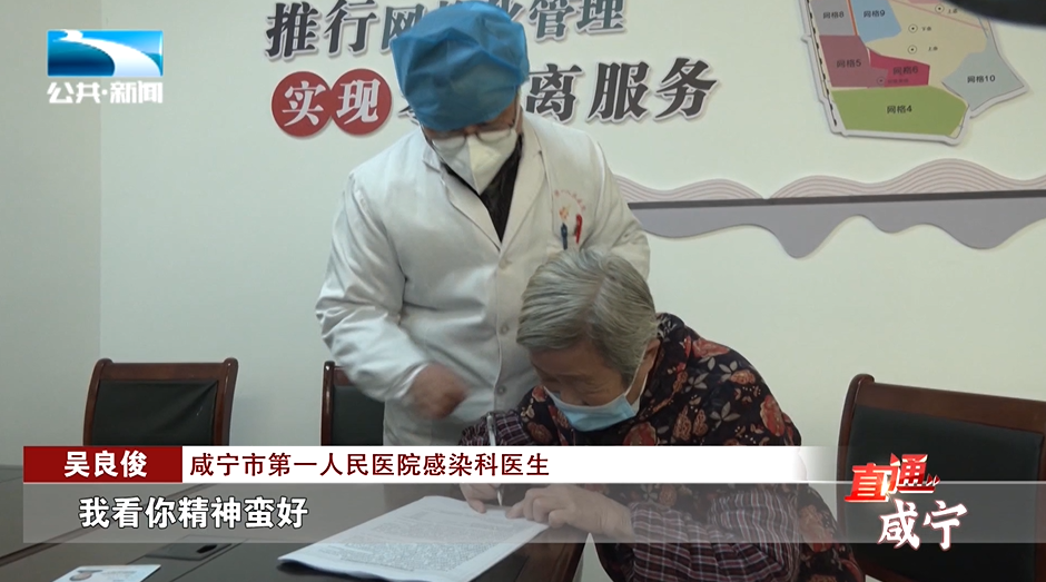 1. “您别紧张,心脏问题我们评估过了,今天可以打。”,2. 在咸安区贺胜桥镇接种点。3. 感染科医生吴良俊正耐心地为72岁的华桃青老人做接种前评估。4. 此前因为心脏问题。5. 华桃青一直有顾虑没能接种。6. 像她这样的老人。7. 咸宁市通过地毯式摸排。8. 发现80岁以上符合条件但未接种的还有约700人。