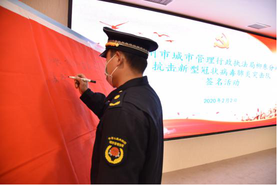 2020年2月2日下午3点,市执法局柳东分局组建了一支抗“疫”突击队,这支突击队有22人,组建用时不到24小时,这般速度背后,是党员们抢着把手印按在请战书上的行为。
