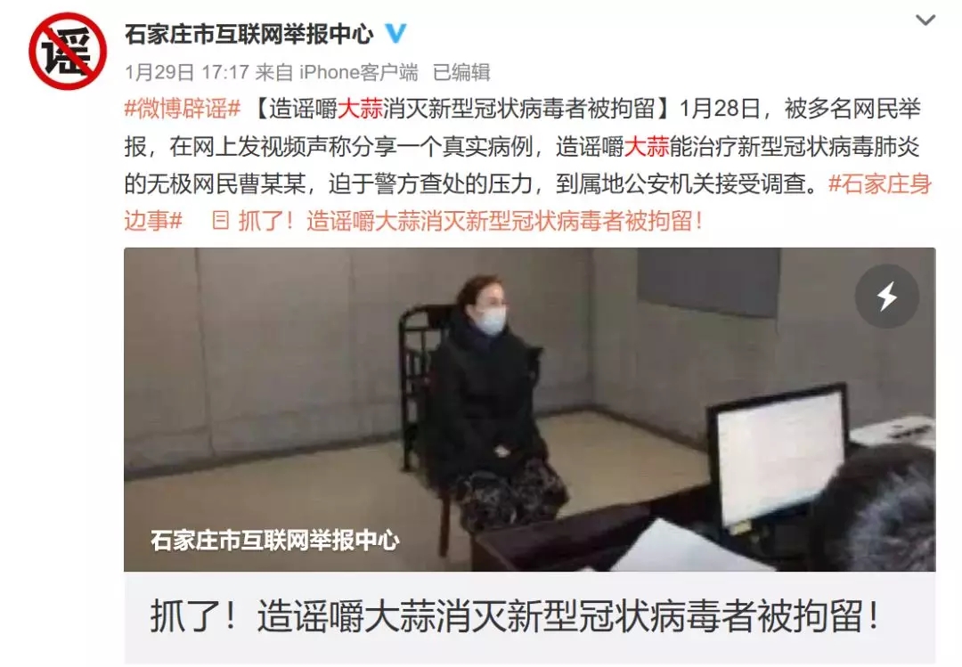 由石家庄的曹某某所拍摄的、名为“嚼大蒜治新冠”的视频,在2020年初的时候,于快手等平台的播放量超出了十万次。他在该视频里,信誓旦旦地“分享真实案例”,可实际上却是道听途说后还添油加醋。石家庄警方依据法律,对其执行拘留5日的处罚,这创下了疫情期间因传播虚假医疗信息而被拘留的首批案例。在患者求药若渴的那个时刻,假偏方就等同于害命。