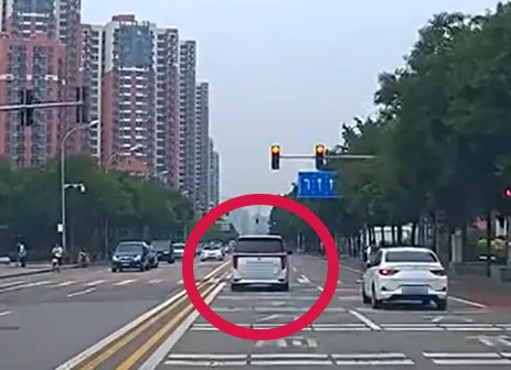 6月13日,下午2点的时候,在双清路,中国科学院生态环境研究中心附近的路口处,一辆小客车,在红灯亮起以后,仍旧加速通过,这一幕,被后车的行车记录仪拍了下来,并且通过随手拍平台进行了举报。