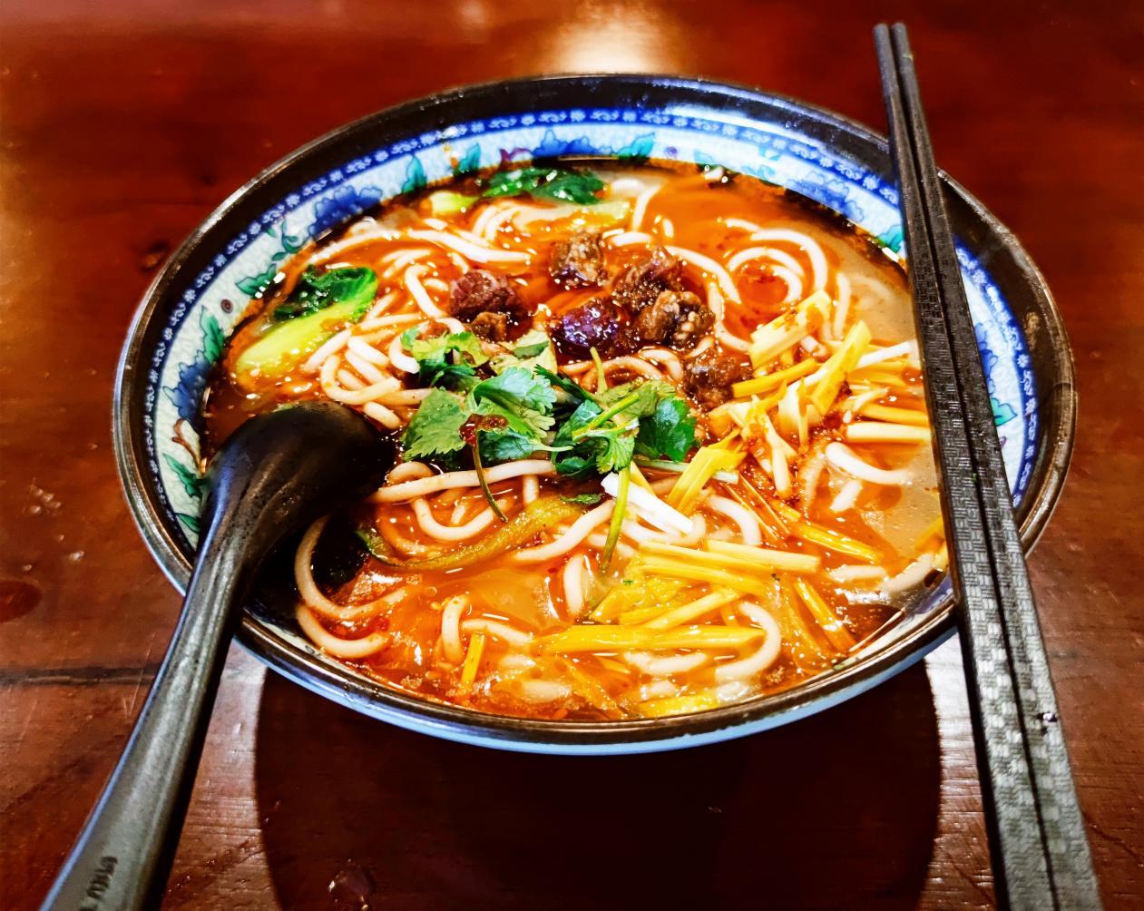 彭城服务区里搬来了徐州地区的食羊习俗,其特色羊肉拉面,采用本地山羊肉,面条是手工擀制而成的,最后还淋上一勺用羊油熬制的辣椒油,辣椒红油亮且香气扑鼻,在寒冷冬日吃上一碗,会让人浑身都觉得暖洋洋的。