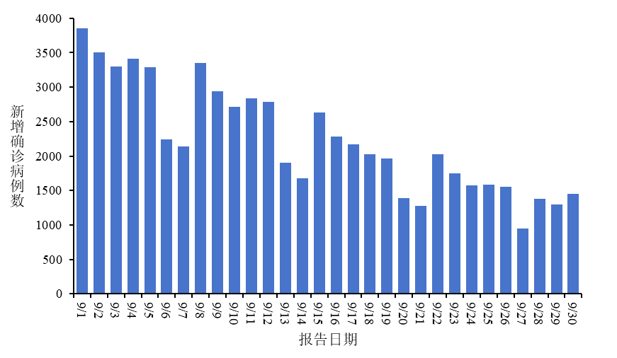 9月份,全国累计报告新增新冠确诊病例,数量为66915例,这个数字背后所反映的,是疫情传播速度,正在放缓。从每日报告的数据来看,病例数呈现出逐日波动下降的态势,这说明病毒传播,在逐步得到控制。