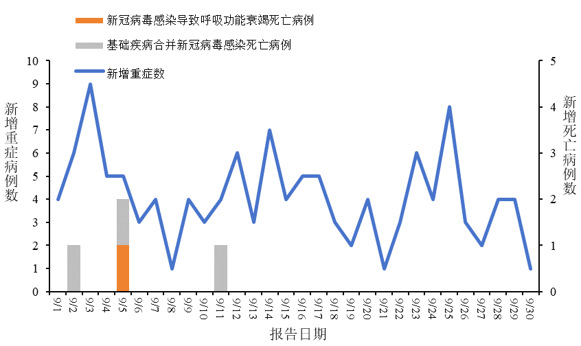 需要予以留意的是,尽管确诊病例的总体数量依旧存在着一定的规模量,然而重症病例以及死亡病例却持续处于极低的水平状况。在9月份时,总共报告了重症病例有123例之多,死亡病例有4例,对于其中的情况而言,仅仅只有1例的直接死因是源于新冠病毒感染这一个因素,而其余的3例则是因为合并有基础病进而导致死亡的。