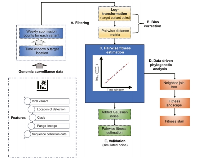 只要曾经有变异株A和变异株B一道与C共同流行过,C便成为了一座数学桥梁。有了通过A与C、B与C的两组作比较的数据,就能够间接推算出A相对于B的适应性差异。正是这个数学技巧,使得原本没办法直接比较的毒株有了明确的强弱关系。