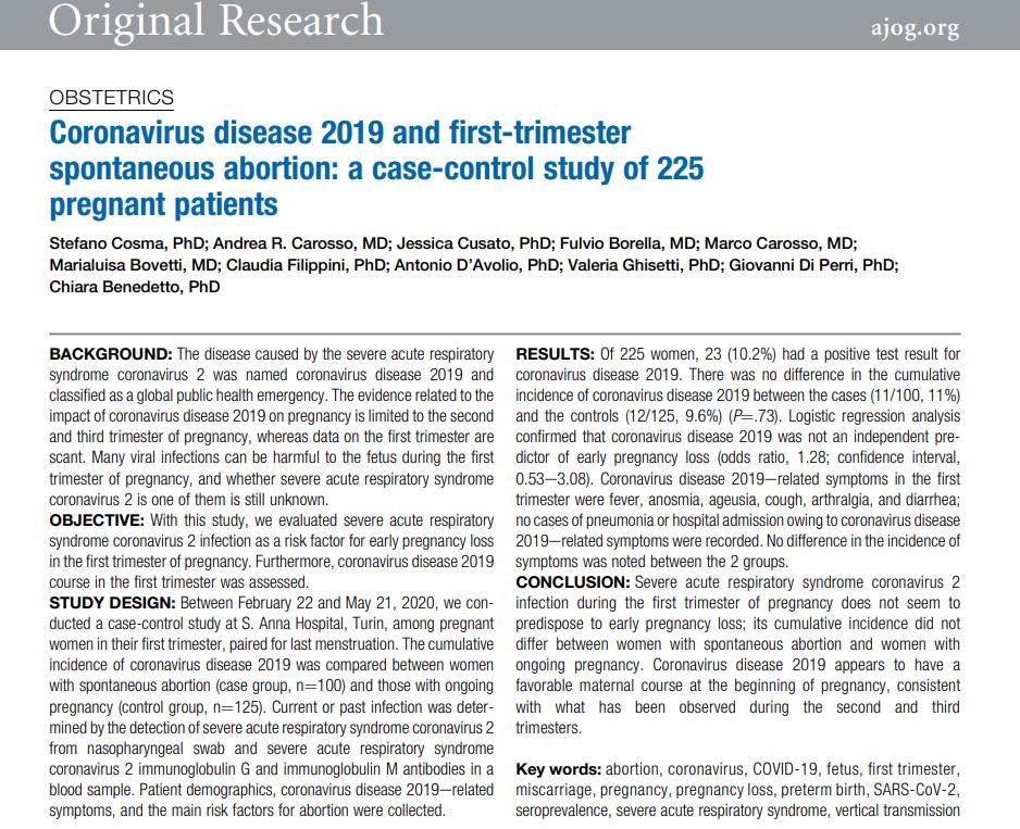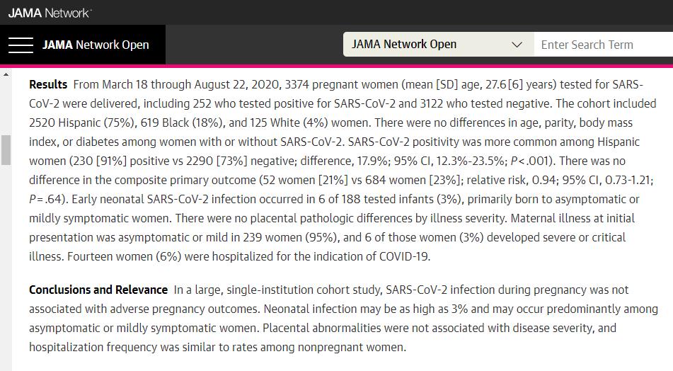 就新冠病毒对于妊娠所产生的影响而言,国际顶级的医学期刊已经发表了多项严谨的研究。其中,一项刊登于《美国医学会杂志》的研究,对无症状感染孕妇以及疫情之前的孕妇之早期流产率进行了对比,结果发现这两者之间并没有显著的差异。